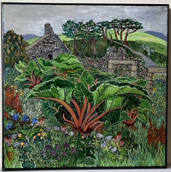 New work coming together, including this just-completed commission, “Rhubarb and Ruins, Scotland” — location Threeburnford in the Borders. Get in touch if you’d like to commission something for family, friends or just yourself. But please not of rhubarb, it’s really really difficult, all those frilly edges …