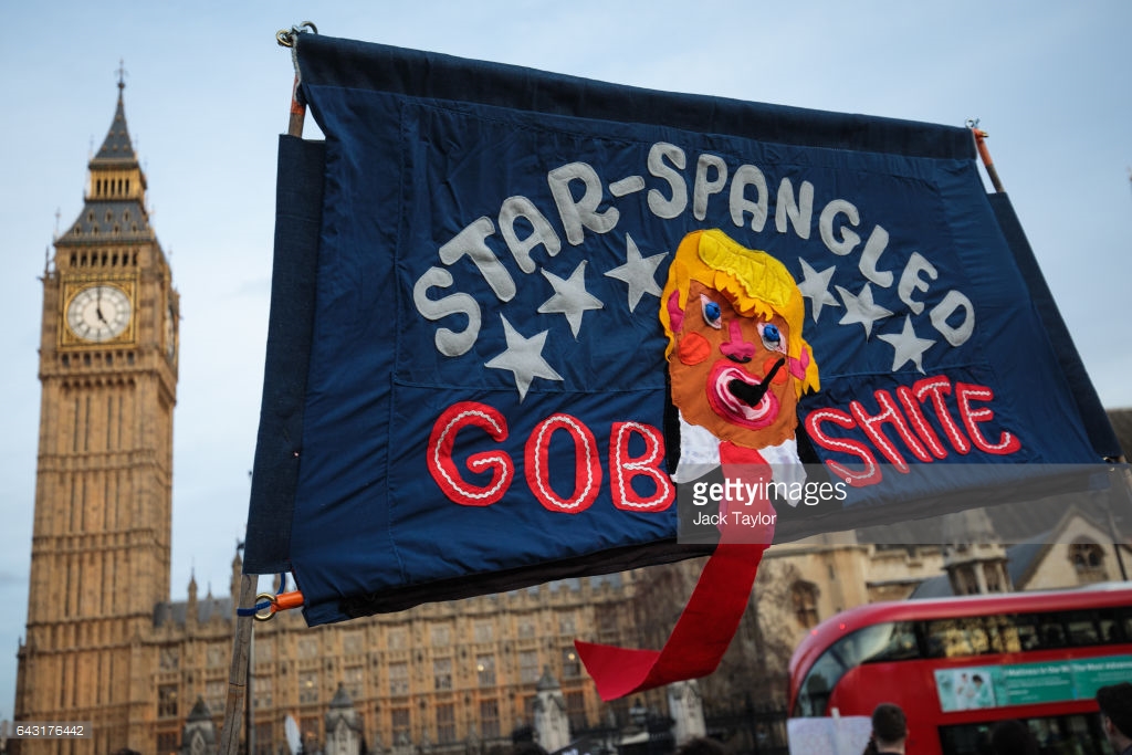 The thing sticking out of the mouth is a forked tongue. Top photo was centre spread in the Guardian. It’s now in the national Protest Art collection at the Bishopsgate Institute, London. As is the Brexit one below. Win some, lose some ….
